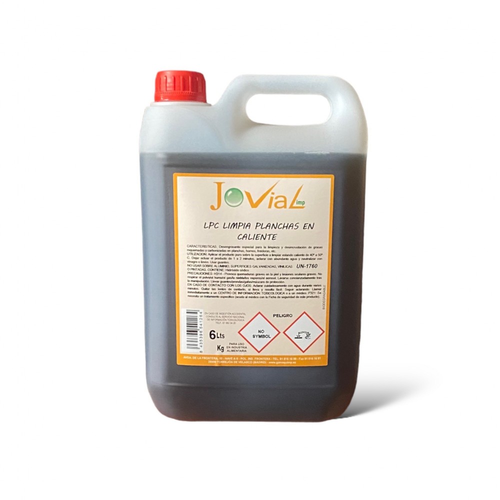 LPC LIMPIAPLANCHAS es un producto líquido diseñado para la limpieza de todo tipo de planchas, hornos, cocinas, freidoras, parrillas, las cuales presentan acumulación de grasas requemadas o carbonillas.