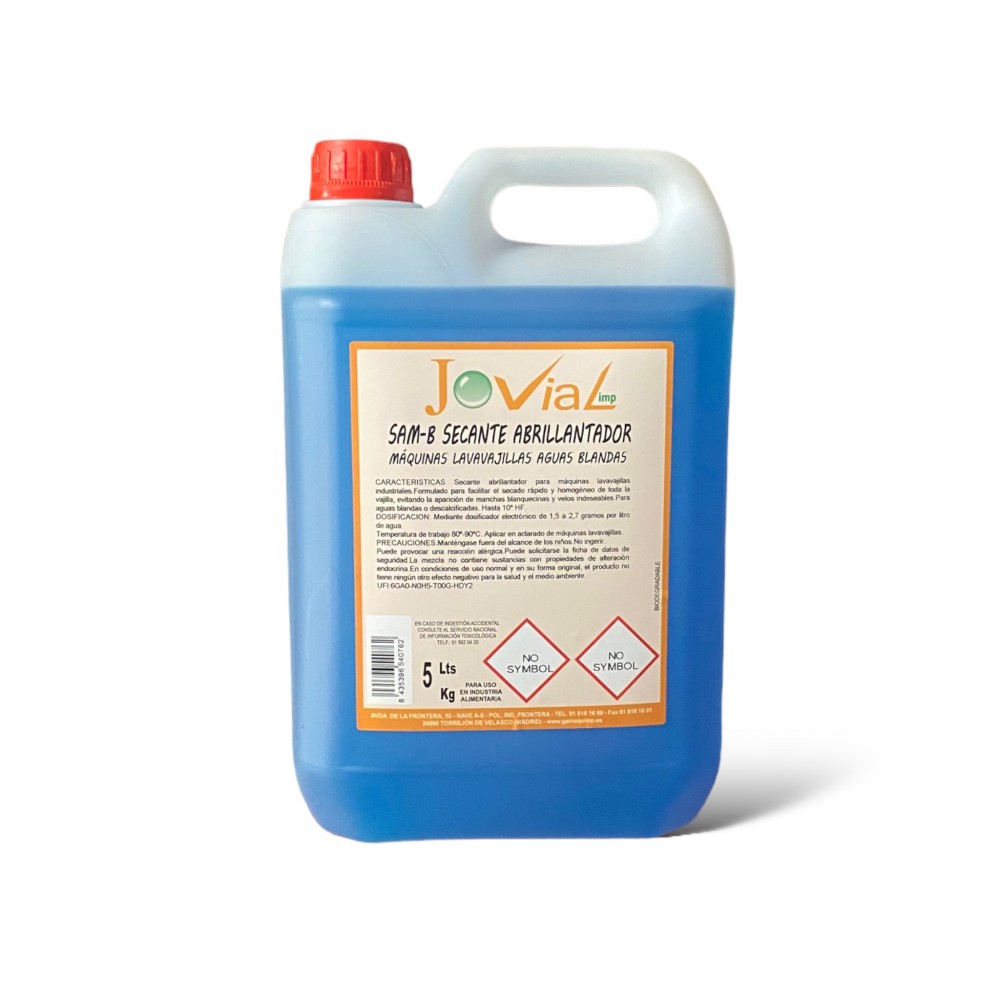 Producto: Secante abrillantador diseñado específicamente para máquinas lavavajillas industriales (AGUAS BLANDAS). Facilita el secado rápido y uniforme de toda la vajilla, asegurando que no queden manchas blanquecinas ni velos indeseables en la superficie, logrando así un acabado impecable y brillante. Ideal para su uso en aguas blandas o descalcificadas, hasta 10 ºfH.