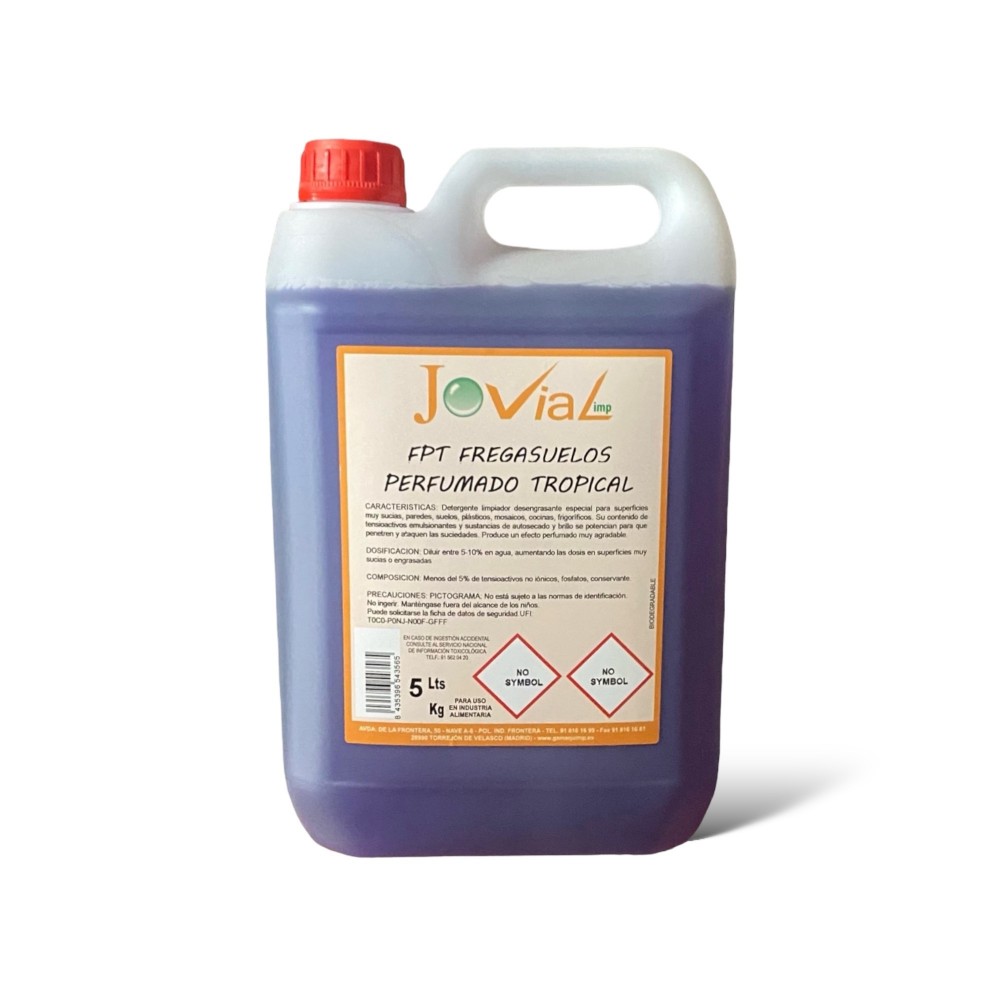 FPT FREGASUELOS PERFUMADO TROPICAL está diseñado para una limpieza profunda y efectiva, proporcionando un ambiente fresco y agradable gracias a su característico aroma a frutos morados tropicales. Es ideal para el uso diario en todo tipo de suelos, ya que no deja residuos y aporta un acabado natural.